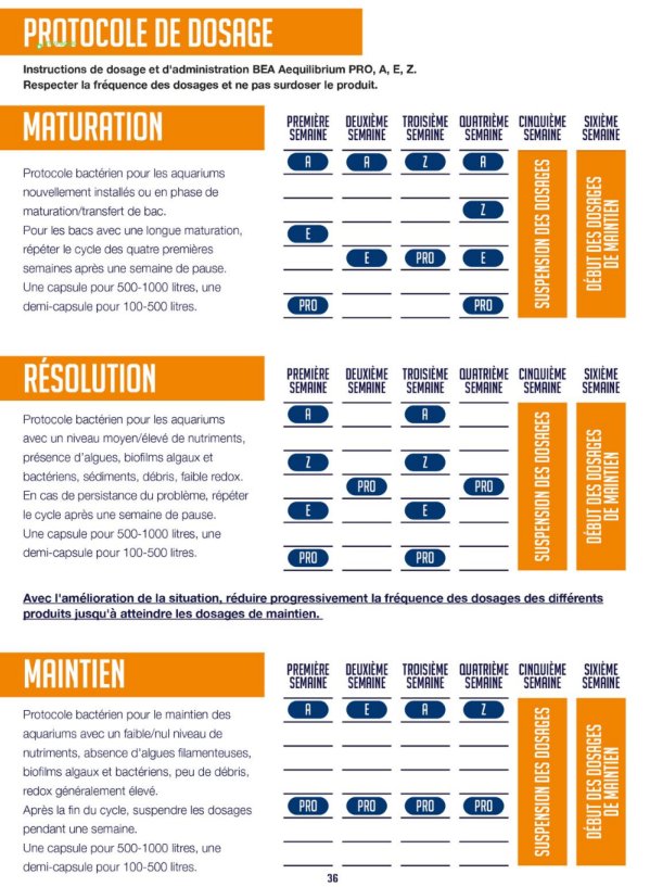 Englobant quatre produits clés – PRO, A, E, Z – le protocole AEQUILIBRIUM a été conçu pour fournir une approche complète et synergique de la gestion biologique des aquariums.