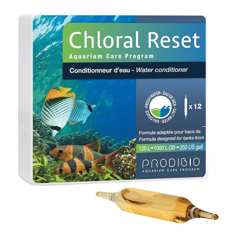 Chloral reset protège tous les organismes vivants de l'aquarium (poissons, coraux, pierres vivantes, bactéries utiles à la biofiltration ') des actions des composés chlorés présents dans l'eau potable, souvent préjudiciables à leur bonne adaptation dans l'aquarium. Très concentré, une ampoule de choral reset rend rapidement une eau traitée par du chlore ou des chloramines utilisable pour un aquarium.la formulation spécifique du conditionneur d'eau chloral reset est également étudiée et adaptée au bien-être des poissons. Il contient aussi des biocolloïdes qui réduisent le stress des poissons, protègent leurs branchies et leurs muqueuses contre d'éventuelles agressions parasitaires externes.lors du démarrage d'un aquarium d'eau de mer, utiliser chloral reset pour préparer votre eau, puis start up pour établir rapidement une filtration biologique de qualité pour une qualité d'eau optimale.lors d'un changement d'eau, utiliser choral reset pour préparer votre eau puis bioclean salt pour entretenir et renforcer votre filtration biologique essentielle au bon fonctionnement de votre aquarium.
