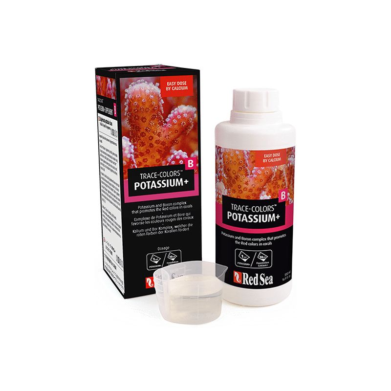 Le potassium joue un rôle essentiel dans le transport des nutriments des coraux dans les tissus mous (y compris les nutriments fournis par les zooxanthelles). Le potassium et le bore affectent significativement le KH dans les tissus mous des coraux et la formation d’aragonite dans son squelette. Le potassium est lié aux chromoprotéines rouges.