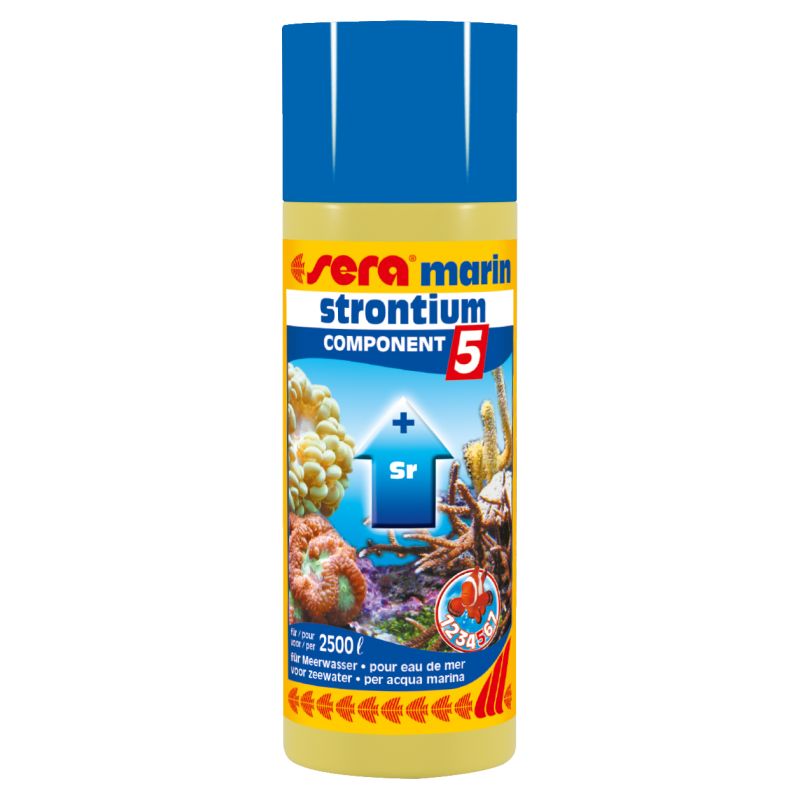 Sera marin component 5 strontium 250ml contient du strontium, un élément essentiel.