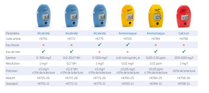 En aquariophilie, l'alcalinité permet de déterminer le pouvoir tampon de l'eau, c'est à dire sa capacité à maintenir le pH constant. HI772 est dédié à la mesure de l'alcalinité (dKH) en eau de mer.