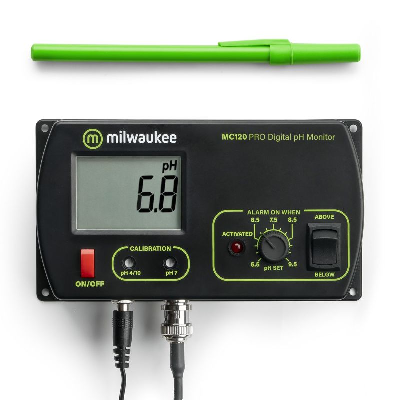 Le moniteur de pH Milwaukee MC120 PRO High Range offre une précision de qualité laboratoire avec une vérification continue facilement visible des niveaux de pH avec des alarmes.