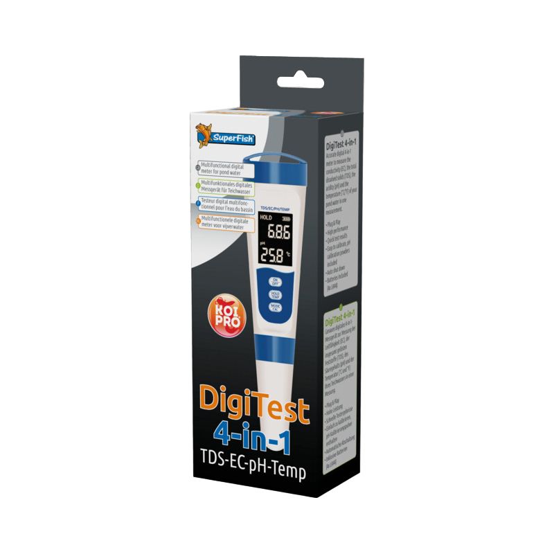 Testeur digital précis 4-en-1 pour mesurer la conductivité (EC), les solides dissous totaux (TDS), l'acidité (pH) et la température (°C / °F) de l'eau de votre bassin en une seule mesure. • Plug & Play • Haute performance • Résultats de test rapides • Facile à calibrer, poudres de calibrage du pH incluses • Arrêt automatique • Piles incluses (4x LR44)