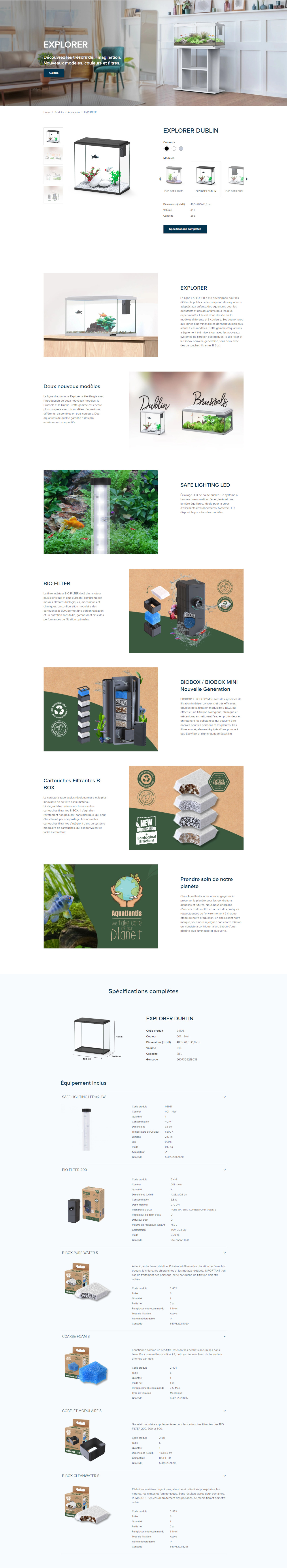 La ligne EXPLORER a été développée pour les différents publics : elle comprend des aquariums adaptés aux enfants, des aquariums pour les débutants et des aquariums pour les plus expérimentés. Elle est donc divisée en 10 modèles différents et 3 couleurs. Ses couvertures aux lignes plus minimalistes donnent un look plus actuel à ces modèles. Cette gamme d'aquariums a également été mise à jour avec les nouveaux systèmes de filtration écologiques, le Bio Filter et le Biobox nouvelle génération, tous deux avec des cartouches filtrantes B-Box.