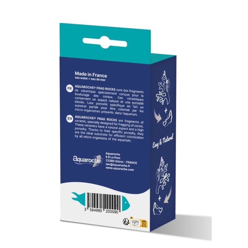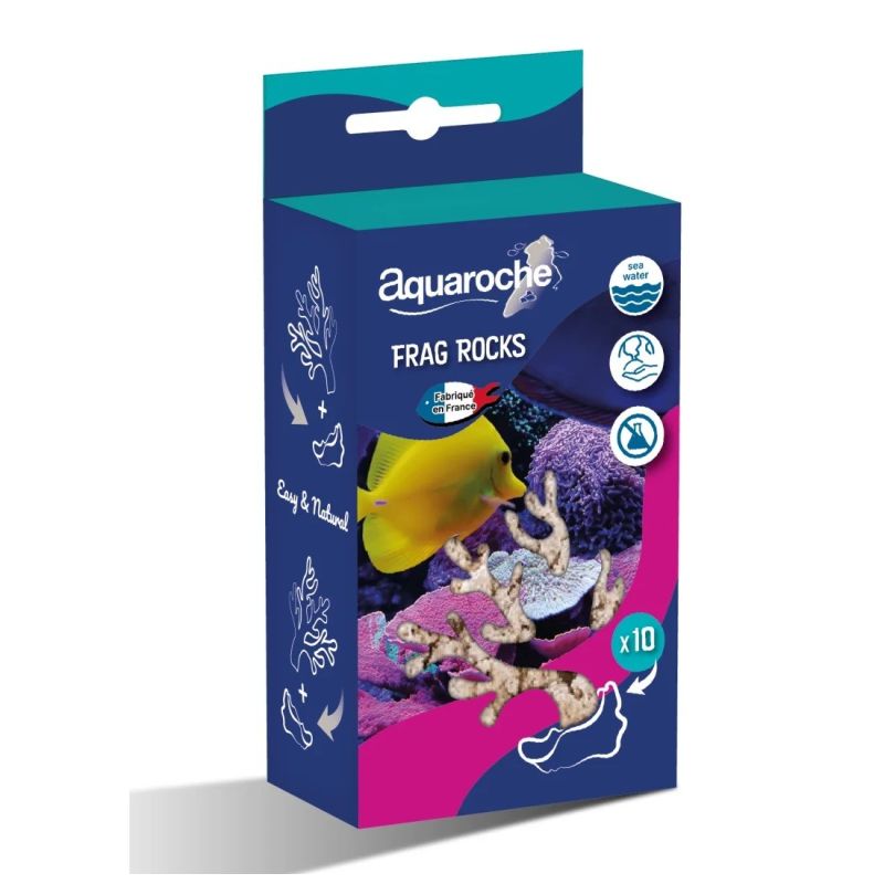 Les supports céramiques AQUAROCHE® Frag Rocks (x10) sont conçus pour le bouturage des coraux. Leur porosité élevée et leur structure naturelle favorisent la colonisation par des micro-organismes, essentiels à la santé de votre récif. Leur aspect minéral et leur forme irrégulière s'intègrent parfaitement dans le décor de votre aquarium, offrant une fixation solide pour une croissance harmonieuse de vos boutures.