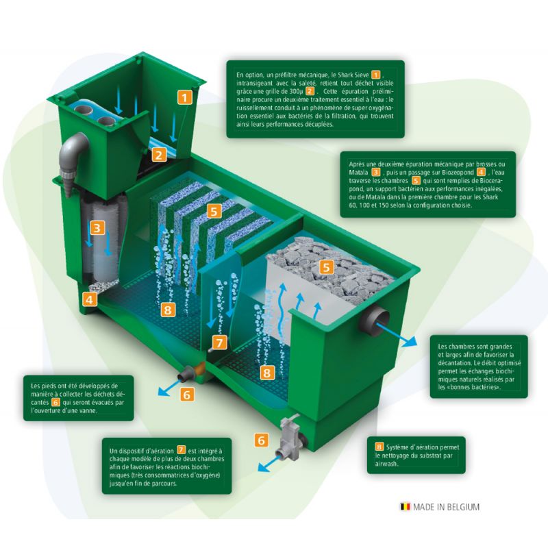 Le Shark 35 permet de répondre à des besoins d’épuration variant d’un étang très poissonneux de 15 m³ jusqu’à une pièce d’eau naturelle de 35 m³ (plus si complément d’un lagunage).