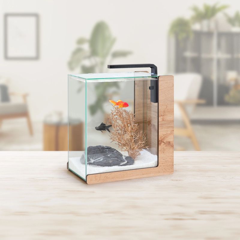 Aqua Lounge est le parfait mélange de charme classique et de design moderne, un bac unique en verre soutenu par une base en bois rétro disponible en trois couleurs sobres, apportant une touche chaleureuse à votre espace. Cette nouvelle gamme d'aquariums comprend trois modèles équipés d'un éclairage UNIV LED et du filtre écologique BIO FILTER.