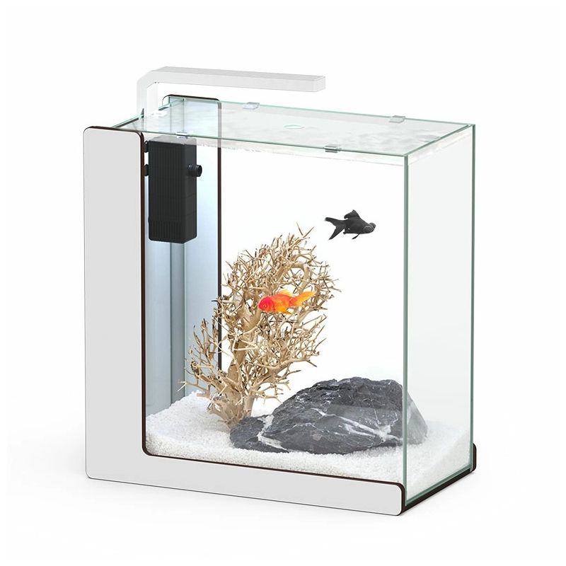 Aqua Lounge est le parfait mélange de charme classique et de design moderne, un bac unique en verre soutenu par une base en bois rétro disponible en trois couleurs sobres, apportant une touche chaleureuse à votre espace. Cette nouvelle gamme d'aquariums comprend trois modèles équipés d'un éclairage UNIV LED et du filtre écologique BIO FILTER.