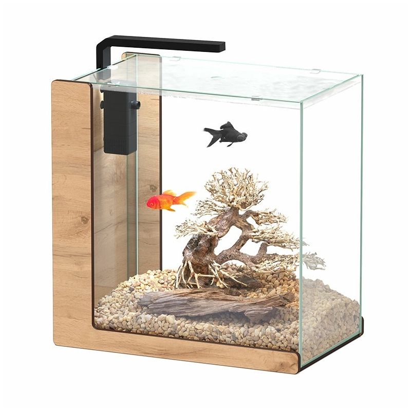 Aqua Lounge est le parfait mélange de charme classique et de design moderne, un bac unique en verre soutenu par une base en bois rétro disponible en trois couleurs sobres, apportant une touche chaleureuse à votre espace. Cette nouvelle gamme d'aquariums comprend trois modèles équipés d'un éclairage UNIV LED et du filtre écologique BIO FILTER.