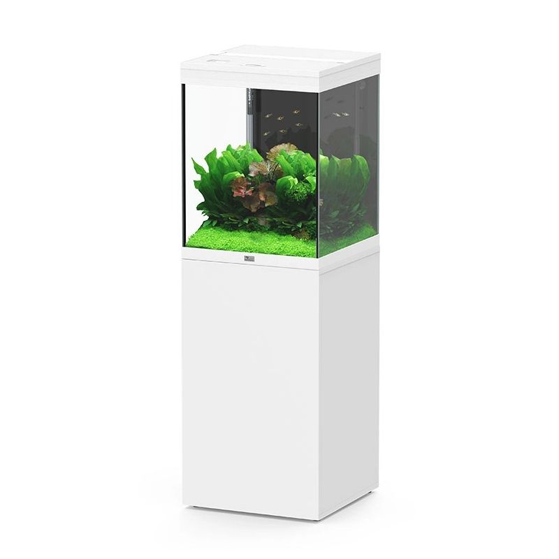 Inspirée par la vie urbaine contemporaine, cette gamme exclusive se distingue par ses formats élégants et élancés. Ces proportions verticales subliment les tendances déco actuelles. Chacun des quatre modèles d'aquarium avec meuble est équipé d'un éclairage LED et d'un système de filtration complet pour un fonctionnement optimal.