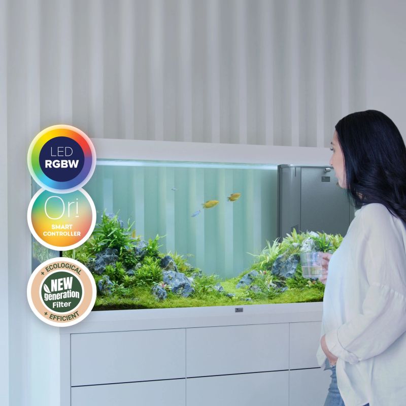 MATÉRIEL INCLUS OPTION BIOBOX : 2x Easy LED RGBW Ultra 50w, Biobox 3, Easyflux 900, Easyklim+ 200w, 2x B-Box Coarse Foam L, 2x B-Box Pure Water L, 2x B-Box CleanWater L, 2x B-Box Anti Algae L, 4x B-Box Bact Life L, 2x B-Box Fine Foam L, 2x Ori Smart Controller.
