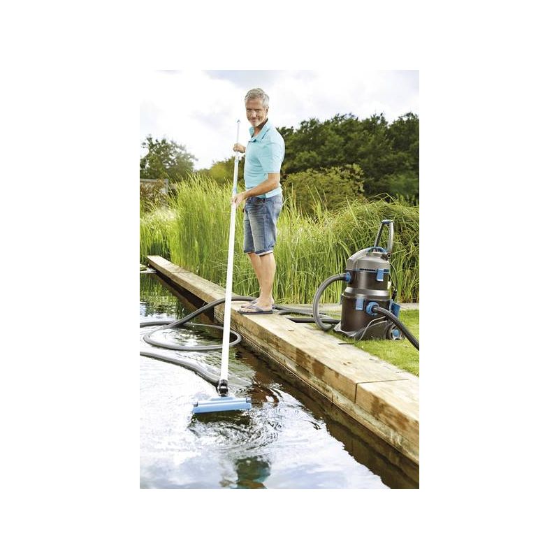 Compris dans la fourniture : 4 tubes robustes en aluminium, embout spécial pour algues filamenteuses, embout universel élargi, embout plat, brosse d'aspiration d'eau, embout à brosse, sac de récupération pour retenir les particules grossières, 5 m de tuyau d'aspiration et 10 m de tuyau d'évacuation.