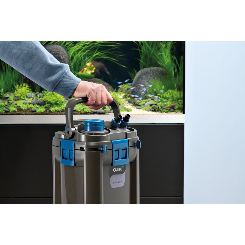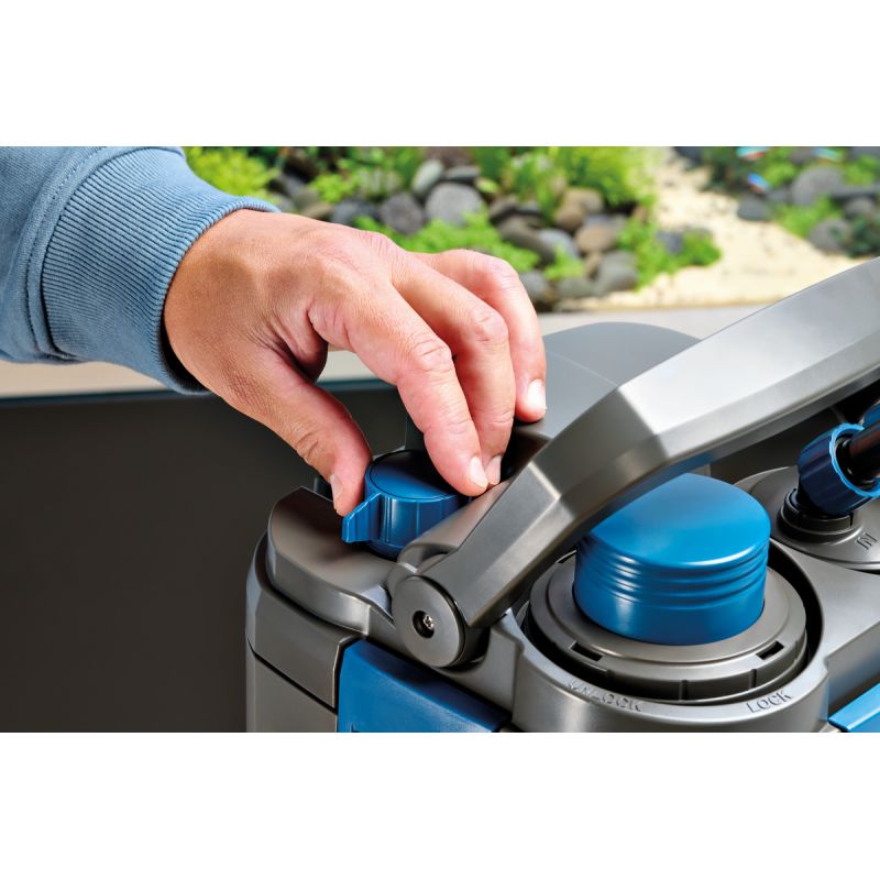 Le filtre externe BioMaster² 600 Thermo répond aux exigences les plus élevées en matière de filtration et de nettoyage. L'association d'une filtration biologique haute performance avec Hel-X et d'un nettoyage mécano-biologique par éponges filtrantes garantit une eau d'aquarium saine et limpide. Le chauffage HeatUp 300 est inclus. Le BioMaster² 600 Thermo convient aux aquariums jusqu'à 600 litres. Grâce à la chambre de préfiltration EasyClean, le filtre se nettoie facilement. L'arrêt automatique et le verrouillage de sécurité préviennent les fuites d'eau accidentelles, par exemple lors du retrait du module de préfiltration. Un bouton de purge d'air pratique facilite l'arrivée d'eau et assure une mise en marche rapide et simple. Outre le chauffage HeatUp, le kit complet comprend les masses filtrantes, les tuyaux, les adaptateurs, ainsi que les tubes d'entrée et de sortie, et est donc prêt à l'emploi.