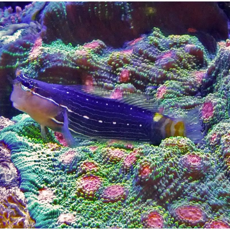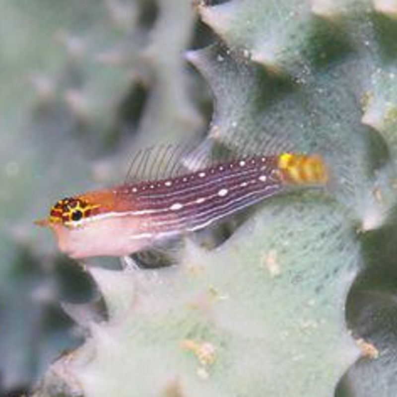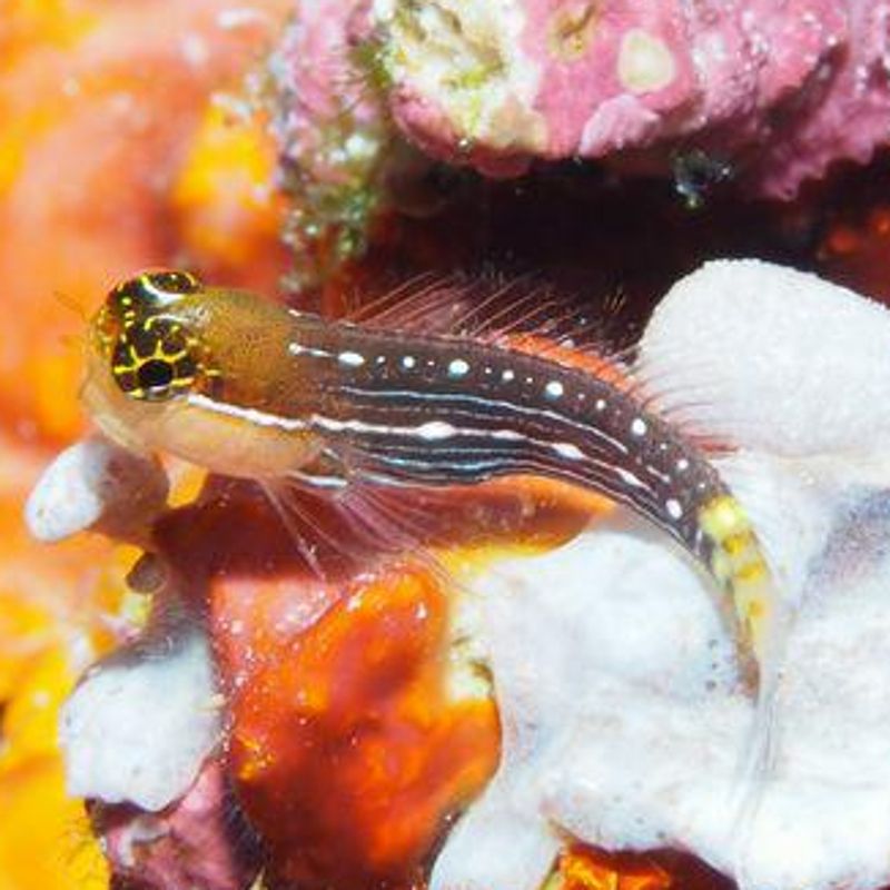 Nom commun : Blennie peinte,White-lined comb-tooth,Dents de peigne bordées de blanc.