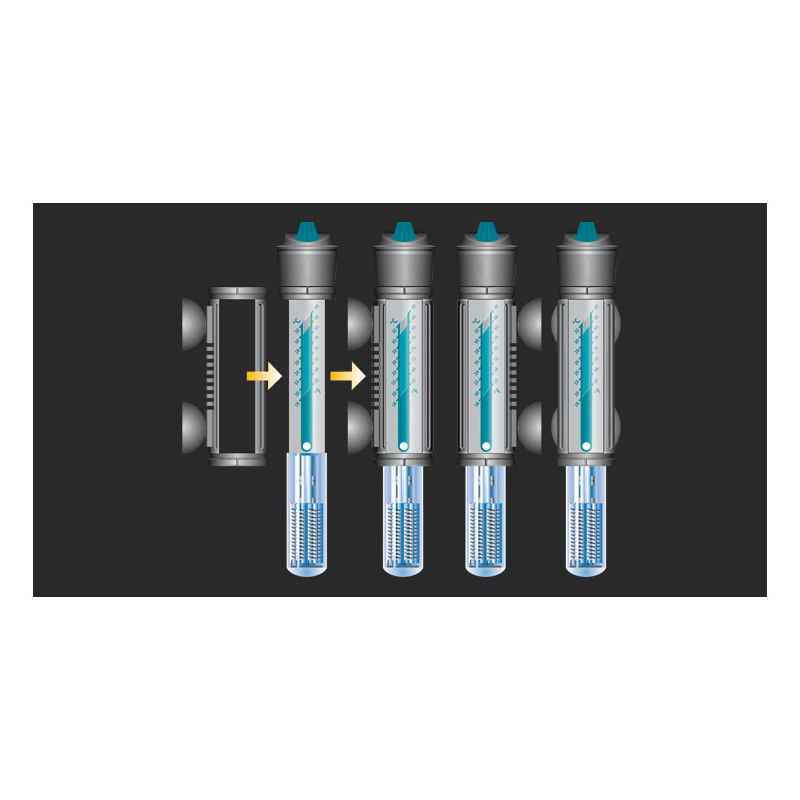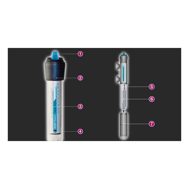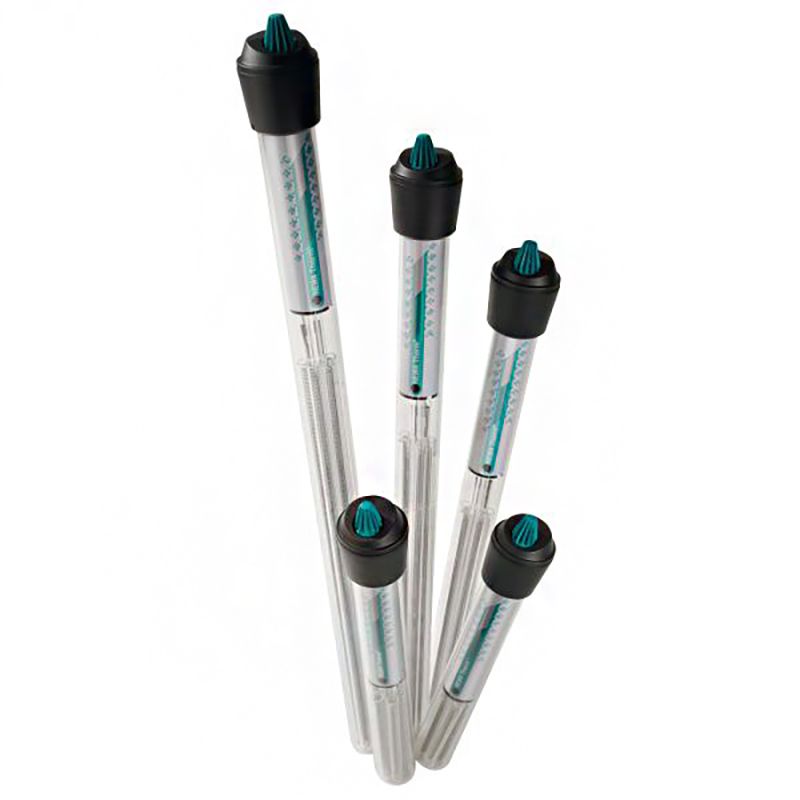 Chauffage pour aquariophilie automatique totalement submersible. Réglage facile et précis de la température souhaitée. Indicateur de température en forme de thermomètre. Thermostat sensible et fiable assurant une température stable. Elément chauffant compact de grande efficacité. Conçu pour une utilisation de longue durée et d’une sûreté totale. Fourni avec un support et des ventouses. Tube en quartz résistant au choc thermique et protection contre les chocs NEWA Protection.