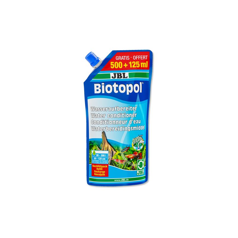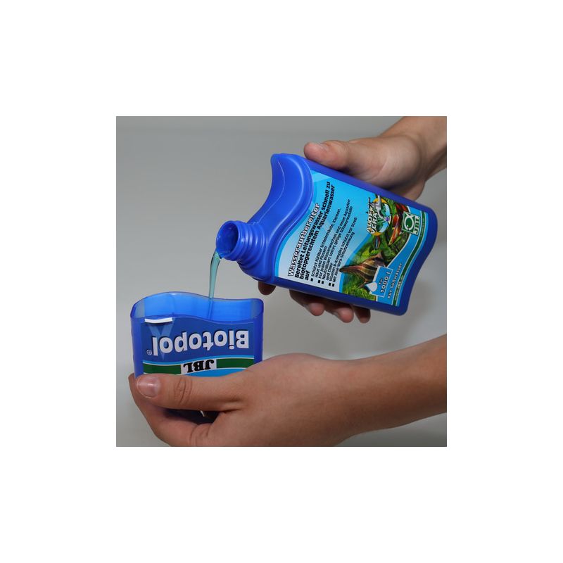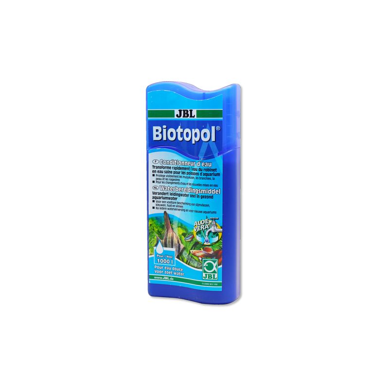 La nature chez soi – Sécurité pour les poissons et les plantes – Poissons et invertébrés doivent se sentir aussi bien dans l’aquarium que dans la nature. Préparez l’eau de l’aquarium pour la rendre conforme au biotope des animaux et protégez les occupants de l’aquarium. La propreté – qualité optimale de l’eau d'aquarium. Pour une nouvelle installation, un renouvellement partiel d’eau et après traitement médical. L’eau du robinet contient des métaux lourds - cuivre, zinc et plomb. Pour qu'elle soit adaptée aux poissons, l'eau ne doit contenir ni métaux lourds, ni chlore, ni chloramines. Ces composants sont neutralisés avec des conditionneurs d’eau qui adaptent l’eau aux poissons. Le Biotopol offre aussi une protection efficace aux muqueuses, aux branchies, à la peau et aux nageoires grâce à l’aloé vera. L’aloé vera évite le stress, protège sensiblement les muqueuses des poissons et réduit le risque de maladie grâce à un complexe à base de vitamine B ; des chélateurs enrobent les métaux lourds, les substances agressives sont éliminées de l'eau au prochain changement d'eau partiel. Transformation du chlore en chlorure inoffensif, le chlore dangereux et les chloramines sont neutralisés.