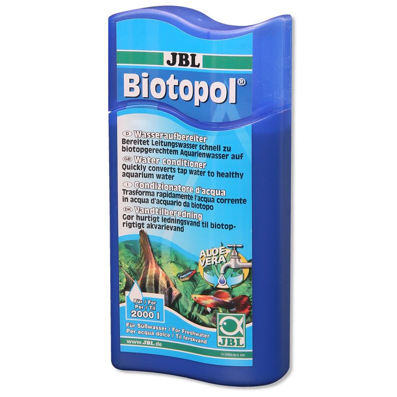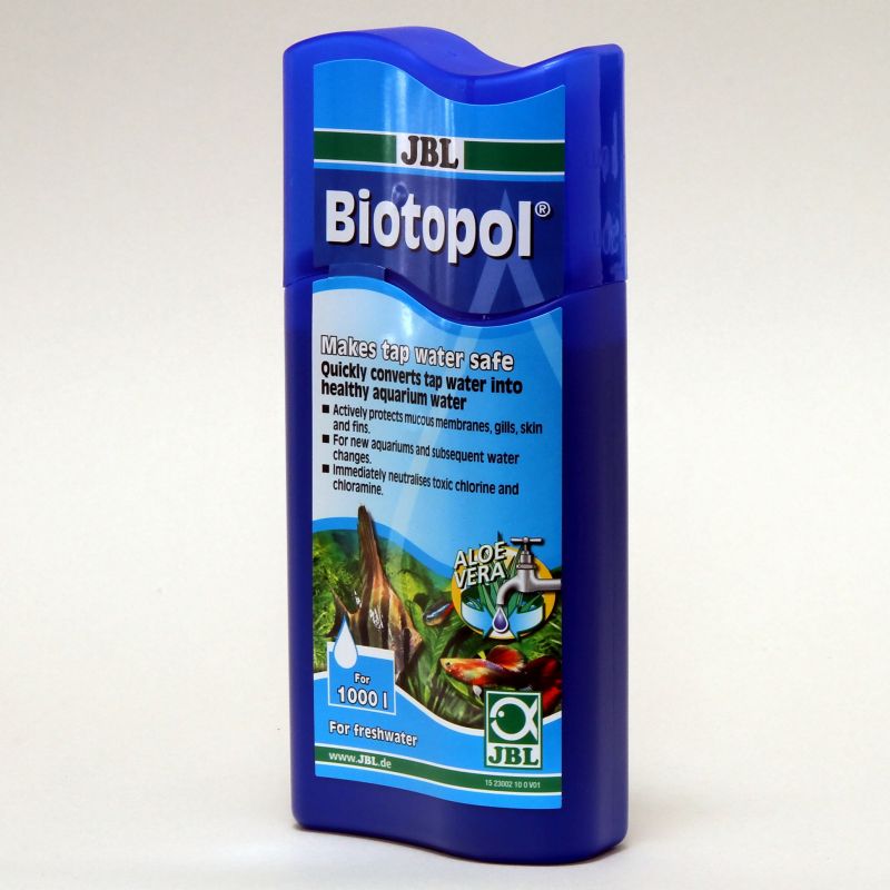 La nature chez soi – Sécurité pour les poissons et les plantes – Poissons et invertébrés doivent se sentir aussi bien dans l’aquarium que dans la nature. Préparez l’eau de l’aquarium pour la rendre conforme au biotope des animaux et protégez les occupants de l’aquarium. La propreté – qualité optimale de l’eau d'aquarium. Pour une nouvelle installation, un renouvellement partiel d’eau et après traitement médical. L’eau du robinet contient des métaux lourds - cuivre, zinc et plomb. Pour qu'elle soit adaptée aux poissons, l'eau ne doit contenir ni métaux lourds, ni chlore, ni chloramines. Ces composants sont neutralisés avec des conditionneurs d’eau qui adaptent l’eau aux poissons. Le Biotopol offre aussi une protection efficace aux muqueuses, aux branchies, à la peau et aux nageoires grâce à l’aloé vera. L’aloé vera évite le stress, protège sensiblement les muqueuses des poissons et réduit le risque de maladie grâce à un complexe à base de vitamine B ; des chélateurs enrobent les métaux lourds, les substances agressives sont éliminées de l'eau au prochain changement d'eau partiel. Transformation du chlore en chlorure inoffensif, le chlore dangereux et les chloramines sont neutralisés.
