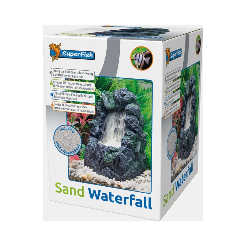 Créez l'illusion d'une cascade au débit rapide dans votre aquarium. Cette cascade est livrée avec 200 grammes de sable, qui est invisiblement transporté vers le haut par l'action venturi d'une pompe de circulation (non incluse) et tombe ensuite dans un mouvement tourbillonnant à l'avant de la formation rocheuse. Cela donne l'impression d'une chute d'eau rapide. Cette cascade fonctionne avec une pompe de circulation d'eau (non incluse). Nous recommandons la SuperFish Aqua-Power 200 pour de bons résultats. Dimensions 11,5 x 14 x 15,5 cm