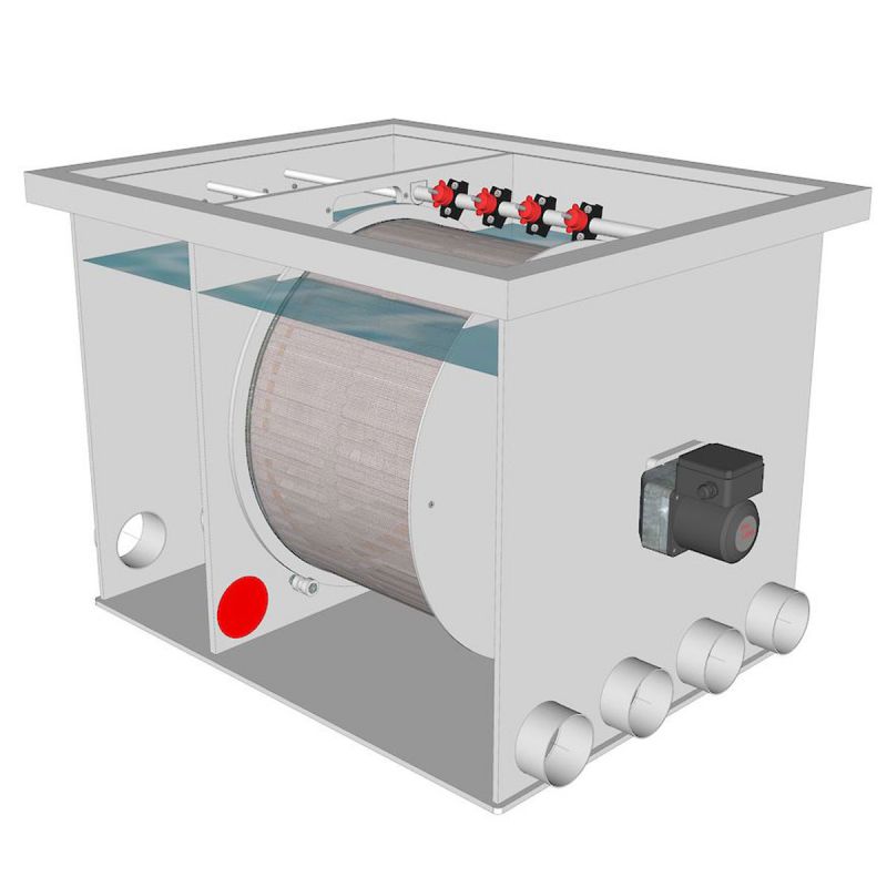 Le filtre à tambour est un pré-filtre mécanique qui filtre de manière simple une contamination très fine (jusqu'à 70 microns) d'un débit d'eau.