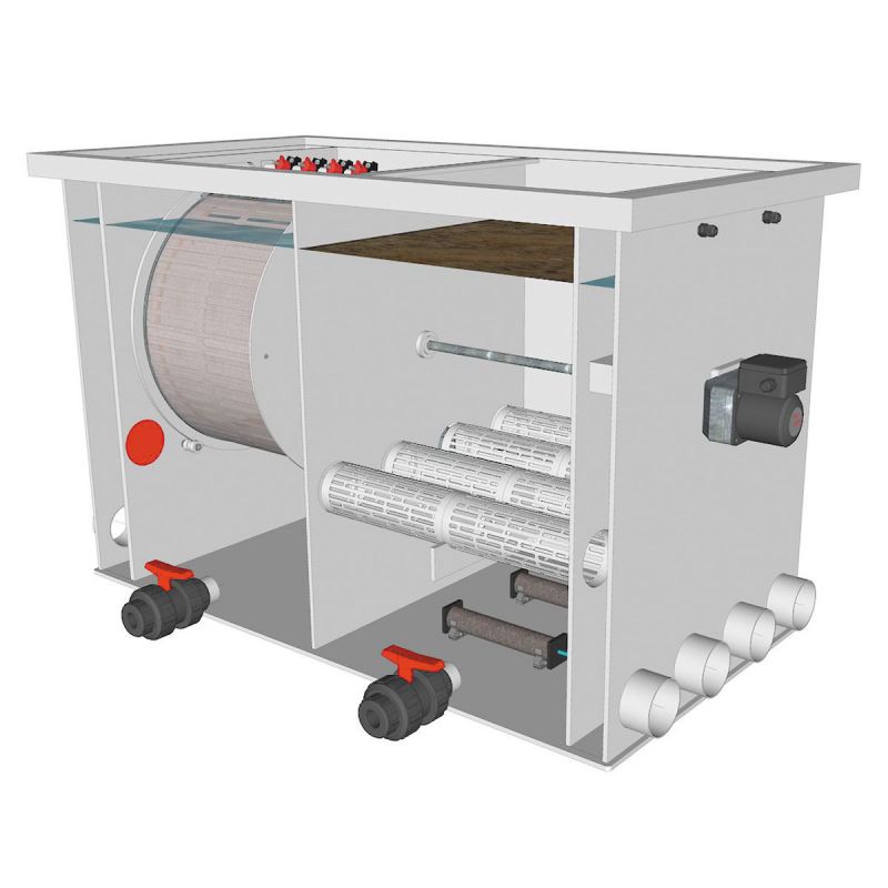 Le filtre à lit mobile est un filtre biologique et après élimination de la saleté grossière à travers le filtre à tambour, l'eau se retrouve dans ce filtre biologique. Ici, des substances nocives telles que l'ammoniac et le nitrite sont transformées par les bactéries en nitrate inoffensif.