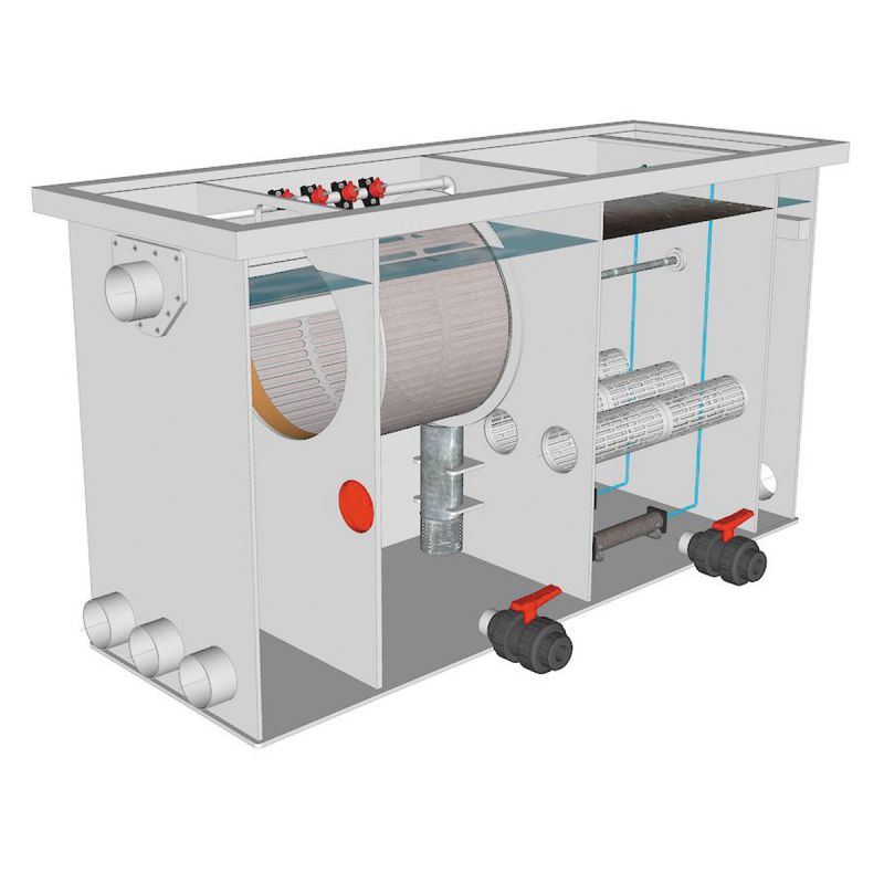 Le filtre combiné combine un tambour et un filtre à lit mobile dans un boîtier compact.