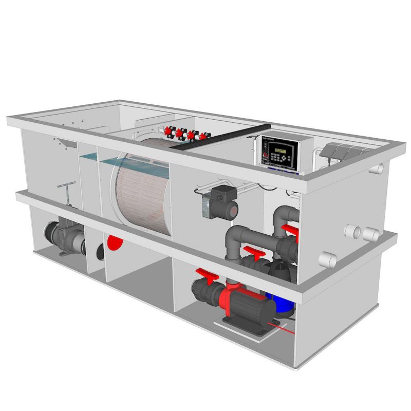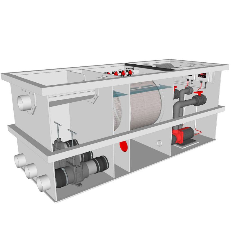 En plus des unités de filtration nécessaires telles que le filtre à tambour ou le filtre combiné, des éléments tels que les raccords, les tuyaux et les pompes prennent généralement beaucoup de place. Les systèmes Plug & Play L de Red Label fournissent une ligne de filtre complète dans un boîtier compact.