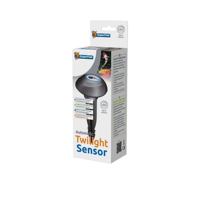 Ce capteur pratique allume automatiquement les éclairages LED lorsqu'il fait sombre à l'extérieur et les éteint lorsqu'il fait jour. Ainsi, le jardin ou bassin est toujours éclairé, et les éclairages ne sont jamais allumés lorsque ce n'est pas nécessaire, ce qui permet d'économiser de l'énergie ! Facile à connecter, il suffit de brancher le capteur crépusculaire entre les câbles des lampes LED SuperFish. Fourni avec un piquet de terre pour une installation stable.