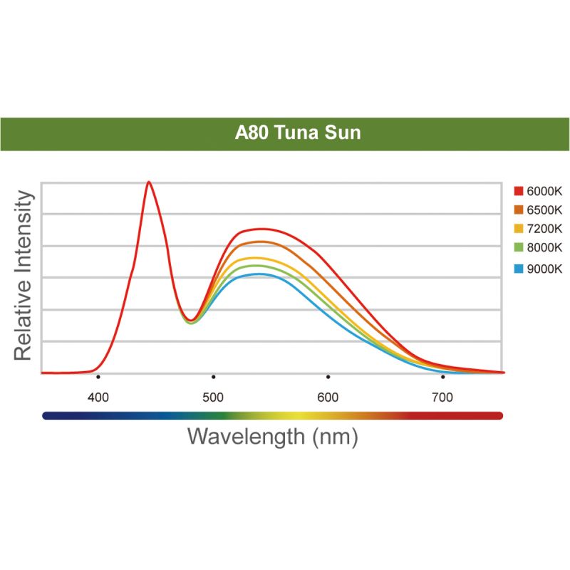Avec son design élégant et sans ventilateur, le luminaire LED A80 Tuna Sun pour aquariums d'eau douce utilise une LED Dense Matrix Array avec lentille optique spéciale. Ce luminaire garantit une surface d'éclairage avantageuse, une pénétration lumineuse efficace ainsi que l'un des meilleurs rapports lumens / Watt de toute la gamme Kessil®.