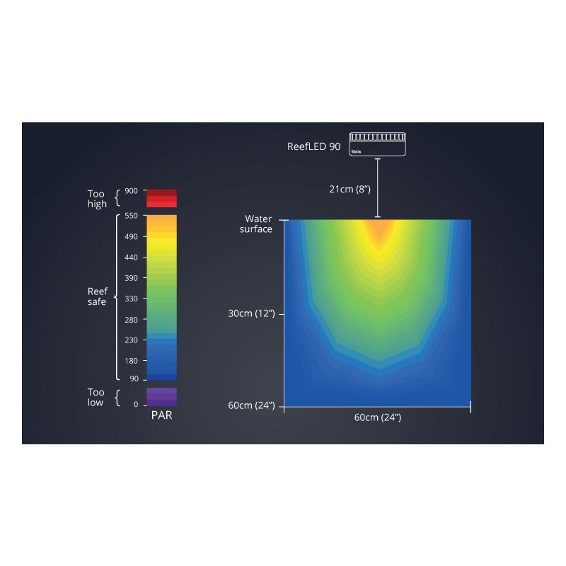 Afin de subvenir aux besoins des coraux les plus exigeants, le spectre de la rampe ReefLED 160S est composé d’un canal bleu Reef-Spec à longueur d’ondes multiples et d’un canal blanc de 9000 K. Un troisième canal « clair de lune » est configurable pour un effet visuel nocturne saisissant.