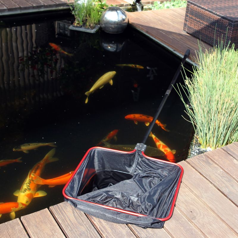 Pour la capture en douceur des poissons de bassin. Filet noir à mailles fines. Également très utile pour ramasser les feuilles et attraper la nourriture vivante.