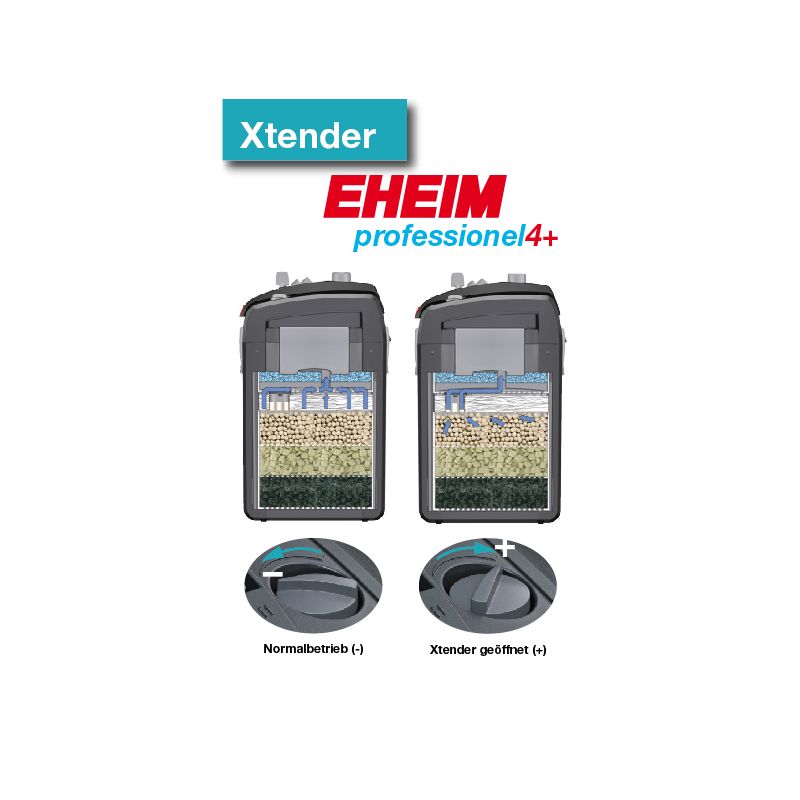 Une solide performance, une efficacité énergétique optimale et un fonctionnement silencieux : à l'instar des modèles précédents, le filtre extérieur Eheim Professional 4+ 250 est une véritable prouesse technique. La nouveauté réside dans la fonction "Xtender“ : lorsque les masses filtrantes sont encrassées et que le flux d'eau diminue, un bouton permet d'ajuster leur réglage si nécessaire.