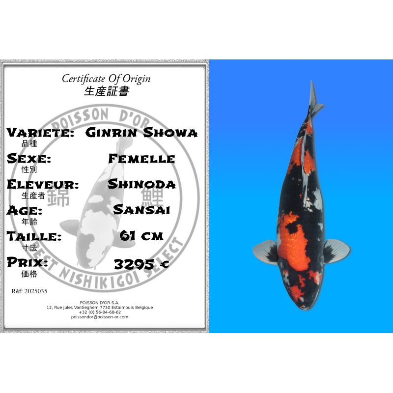 Koï Japon Ginrin Showa femelle éleveur Shinoda 61cm