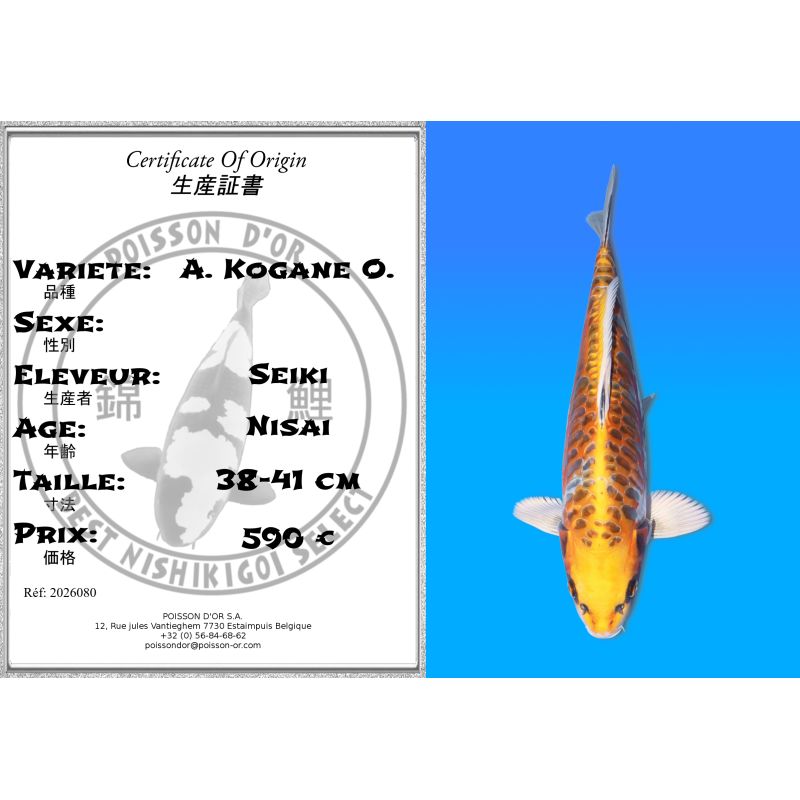 Koï Japon A. Kogane O. éleveur Seiki 38-41 cm