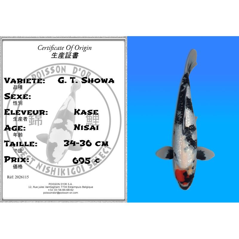 Koï Japon G. T. Showa éleveur Kase 34-36 cm