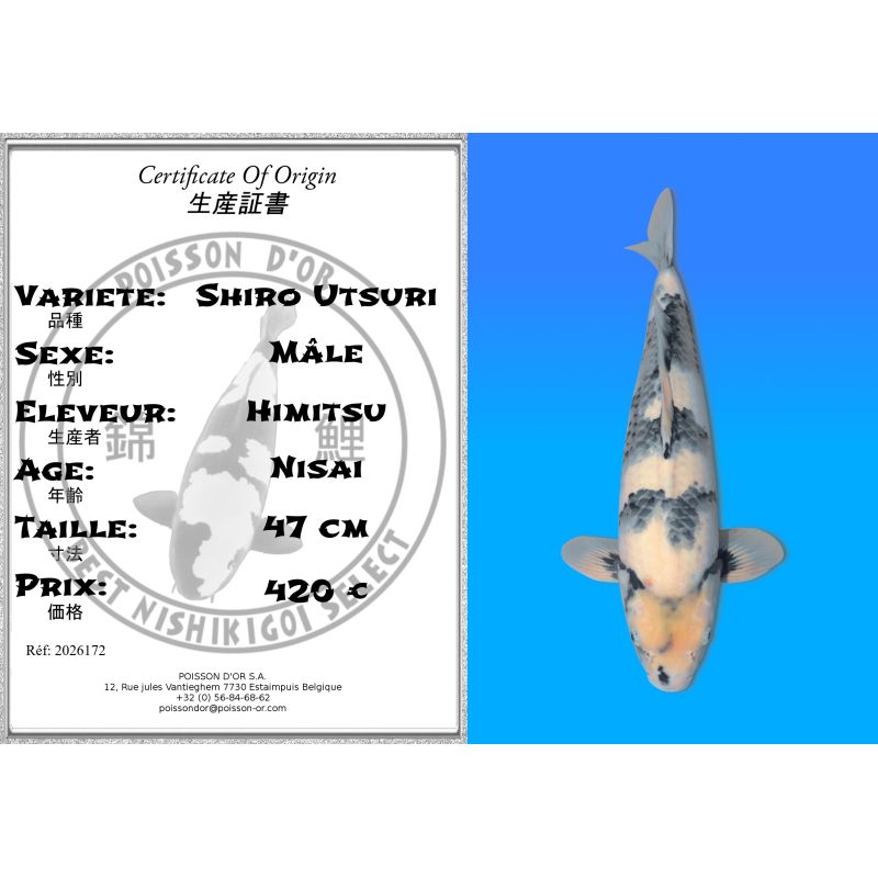 Koï Japon Shiro Utsuri mâle éleveur Himitsu 47 cm