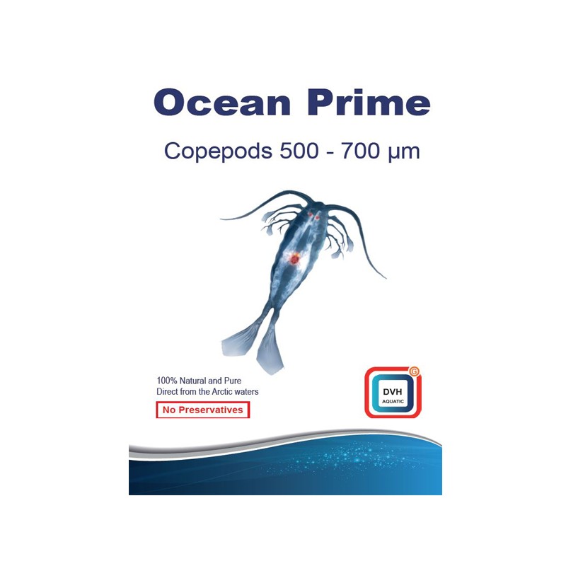 Ocean Prime est disponible en 500-700 microns et copépodes 2mm de taille. Chaque sachet contient 50 grammes de copépodes entiers / intacts.