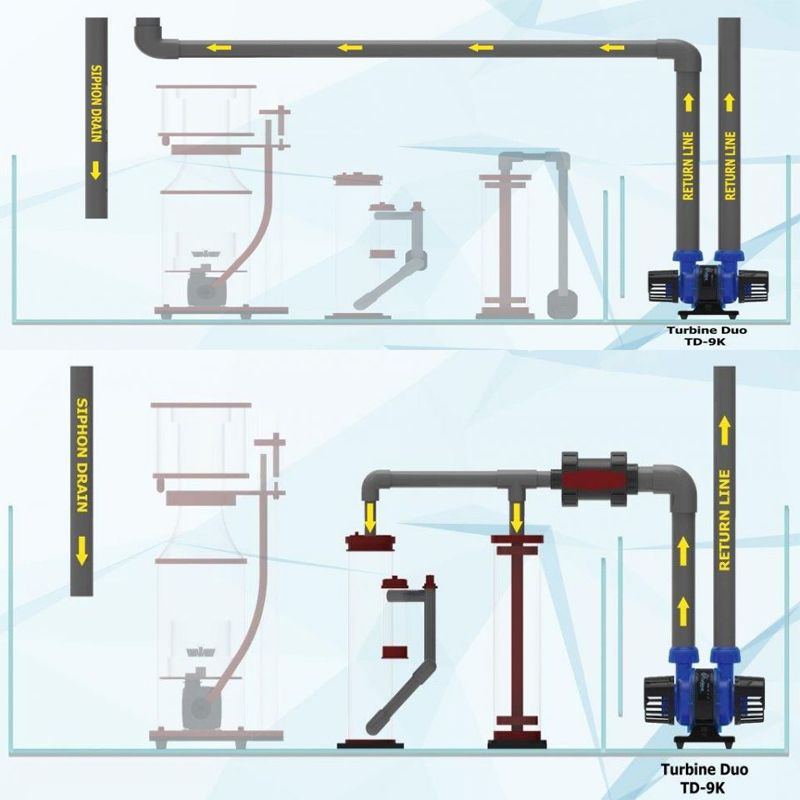 Grace sa conception en double sortie, la pompe Turbine Duo est idéale pour de nombreuses applications différentes, telles que l'utilisation comme pompe de retour, pompe pour refroidisseur, pompe pour réacteur de calcium / bio-pellets, etc.