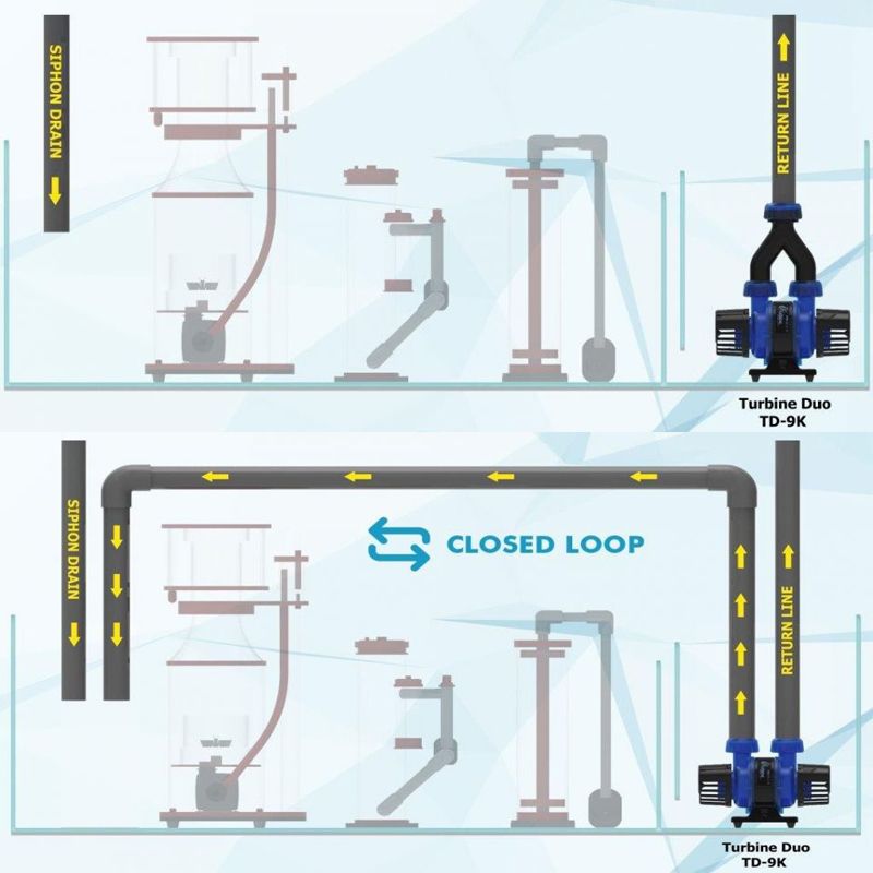 Grace sa conception en double sortie, la pompe Turbine Duo est idéale pour de nombreuses applications différentes, telles que l'utilisation comme pompe de retour, pompe pour refroidisseur, pompe pour réacteur de calcium / bio-pellets, etc.