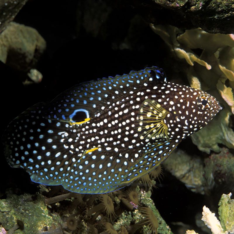 Notes : Poisson d'une magnificence incroyable,lorsqu'il est alarmé, ce poisson enfoncera sa tête dans un trou et exposera sa queue qui imite la tête de la murène.