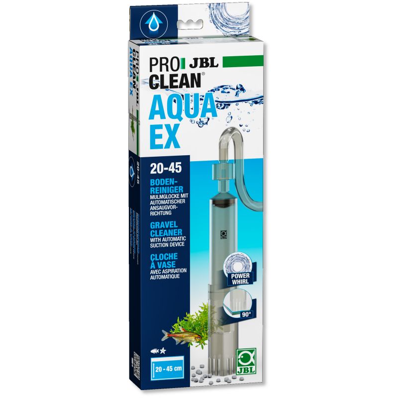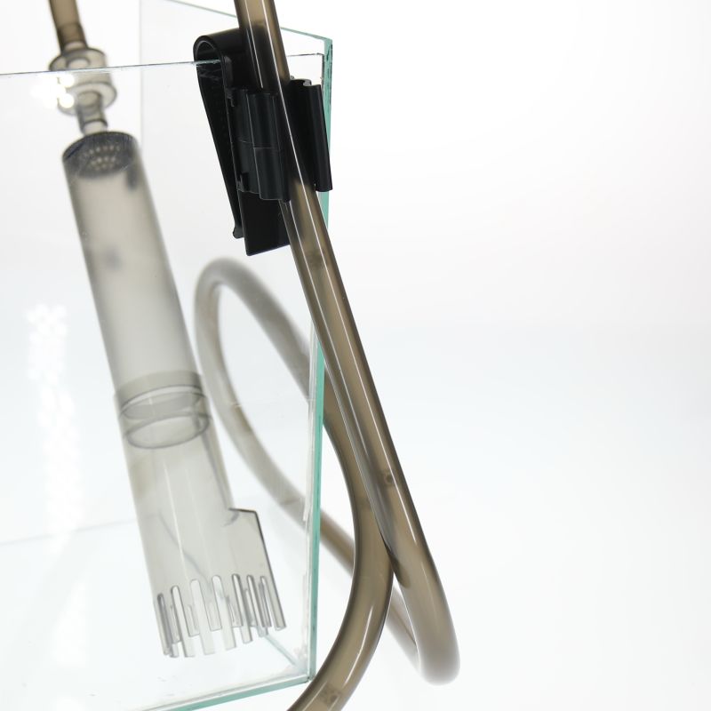 Aspiration des produits métaboliques, des résidus alimentaires et végétaux (humus) du fond de l’aquarium. Pratique : cloche à vase avec siphonnage automatique.