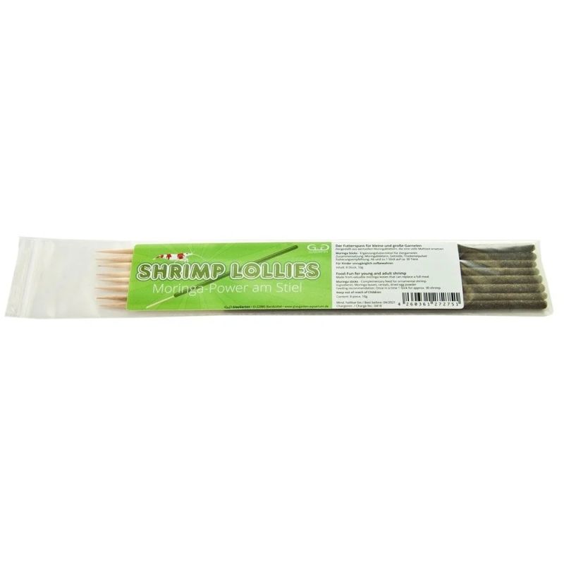 friandises pour crevettes. En un rien de temps, le bâtonnet de moringa sera recouvert de crevettes, et vous pourrez les observer se régaler de leur nouvelle nourriture préférée. La poudre de moringa adhère parfaitement au bâtonnet, permettant à vos crevettes de s'en nourrir longtemps. Ces friandises pour crevettes - Moringa Power (bâtonnets de moringa) contiennent de nombreuses vitamines et minéraux essentiels, qui complètent parfaitement l'alimentation principale de vos crevettes. Conseil d'utilisation : 1 friandise pour environ 30 crevettes, de temps en temps. Ingrédients : moringa, céréales, poudre d'œuf déshydratée. Tenir hors de portée des enfants. Contenu : 8 pièces.