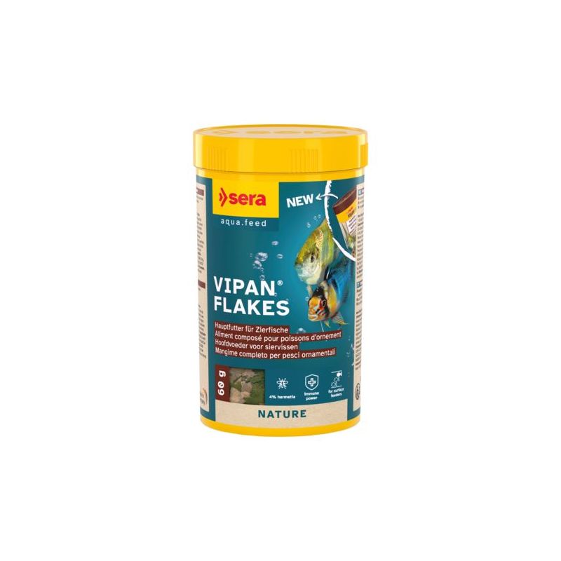 Ce produit appartient à la gamme « sera Nature », qui ne nécessite ni colorants ni conservateurs. Une alimentation variée avec des ingrédients naturels constitue la meilleure protection contre les carences et favorise la santé et la vitalité des poissons. C'est pour cette raison que les aliments Nature contiennent des ingrédients naturels comme par exemple l'algue spiruline, le krill ou la farine d'insectes durables provenant de la larve de la mouche soldat (Hermetia). Les symboles sur le devant de l'emballage informe sur ces composants et leur proportion dans les aliments.