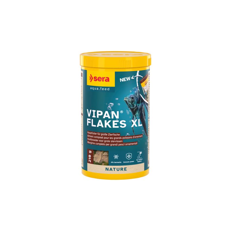 sera Vipan Nature gros flocon est l’aliment composé à base de gros flocons flottants sans colorants ni conservateurs, pour tous les gros poissons d’ornement se nourrissant en surface.