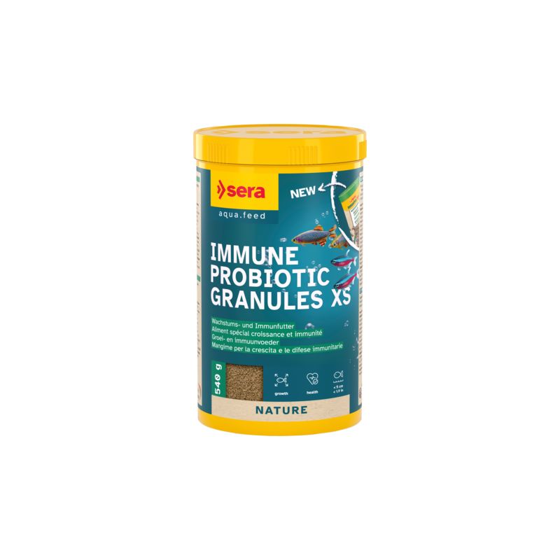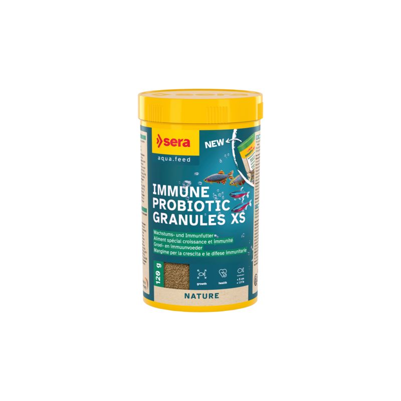 sera ImmunPro Mini est l’aliment Pro spécial élevage descendant lentement au fond, pour tous les poissons d’ornement jusqu’à 4 cm. Les probiotiques, ajoutés à l’aliment selon un procédé spécial, stabilisent la flore intestinale des petits poissons d’ornement. Ainsi, étant donné l’assimilation optimisée, la pollution de l’eau est nettement réduite. Grâce à sa haute teneur en protéines (plus de 50 %) et à l’addition de probiotiques et d’autres ingrédients fonctionnels, tels que les mannanes-oligosaccharides (MOS), Haematococcus et Spiruline, l’aliment Pro spécial élevage favorise la croissance rapide, le développement fort et l’éclat des couleurs des poissons.