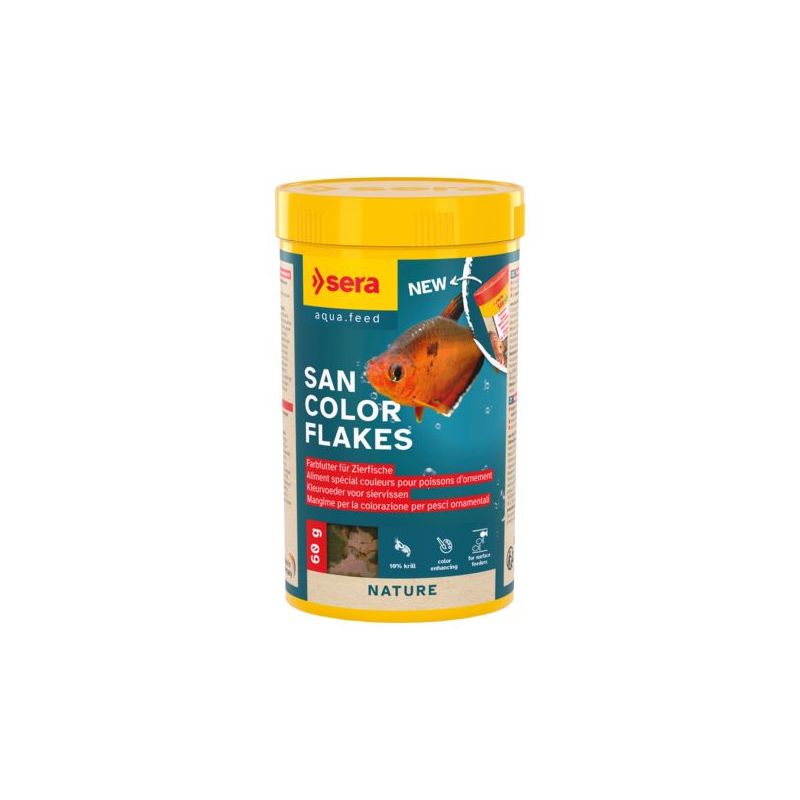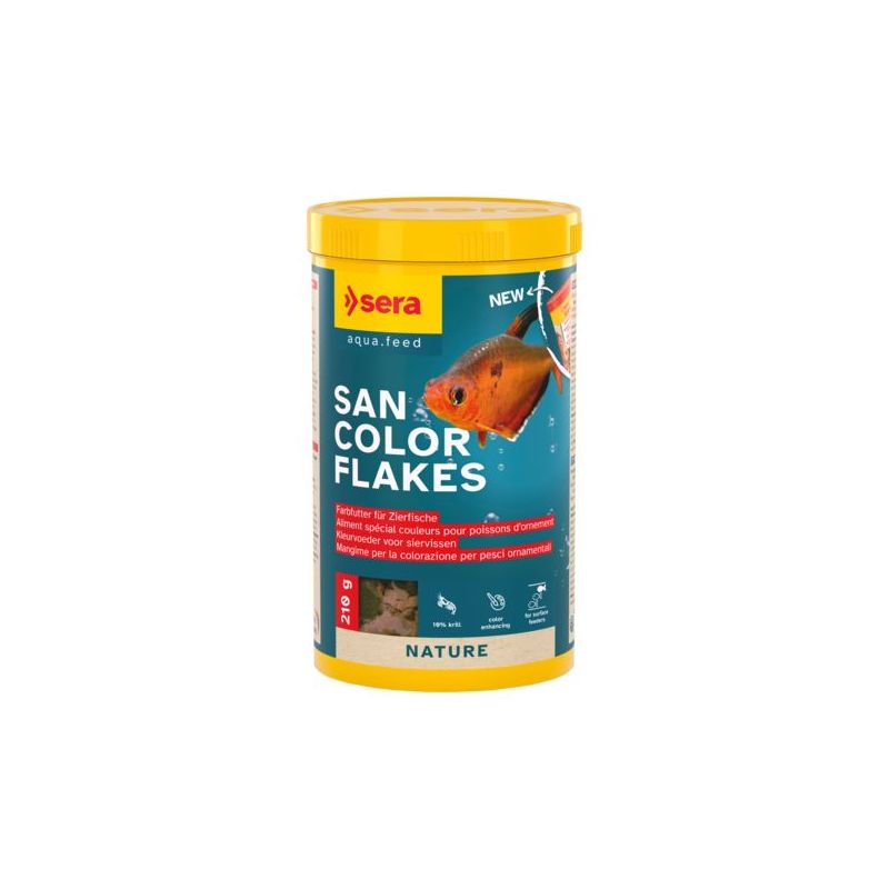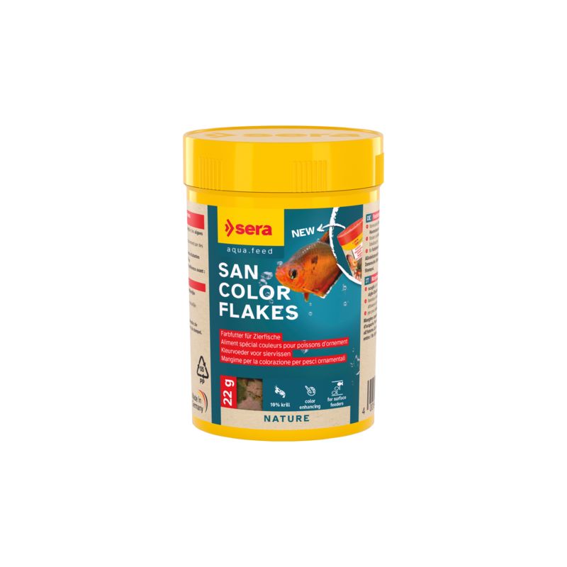 Ce produit appartient à la gamme « sera Nature », qui ne nécessite ni colorants ni conservateurs. Une alimentation variée avec des ingrédients naturels constitue la meilleure protection contre les carences et favorise la santé et la vitalité des poissons. C'est pour cette raison que les aliments Nature contiennent des ingrédients naturels comme par exemple l'algue spiruline, le krill ou la farine d'insectes durables provenant de la larve de la mouche soldat (Hermetia). Les symboles sur le devant de l'emballage informe sur ces composants et leur proportion dans les aliments.