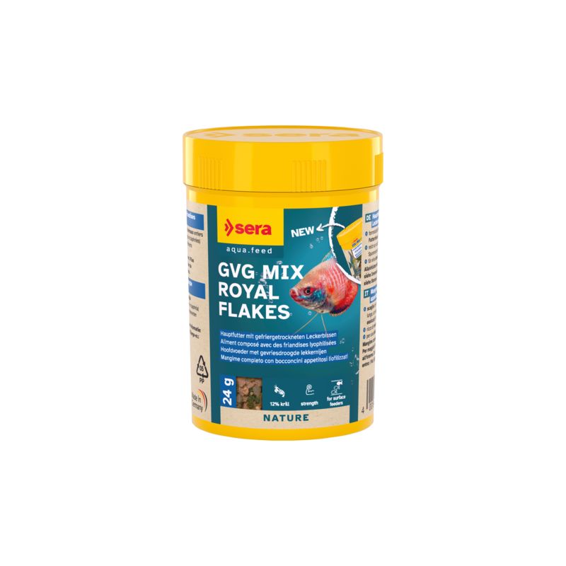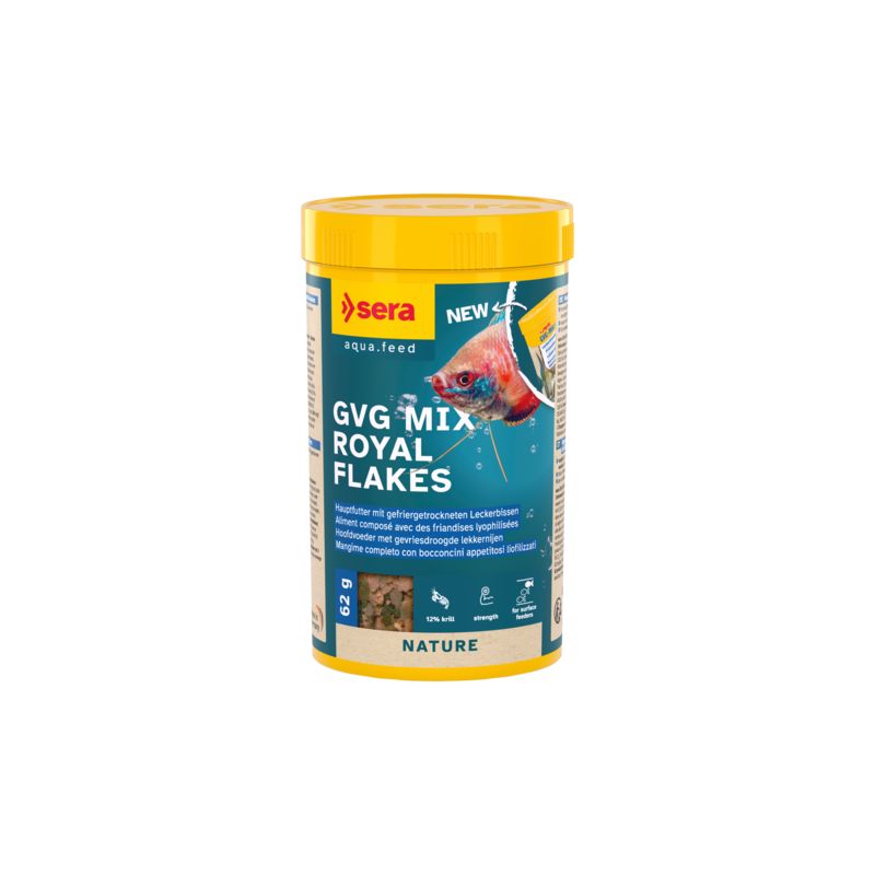 sera GVG-Mix Nature est la friandise pour des poissons d’ornement se nourrissant plutôt en surface et qui ne contient aucun colorant ni conservateur.
