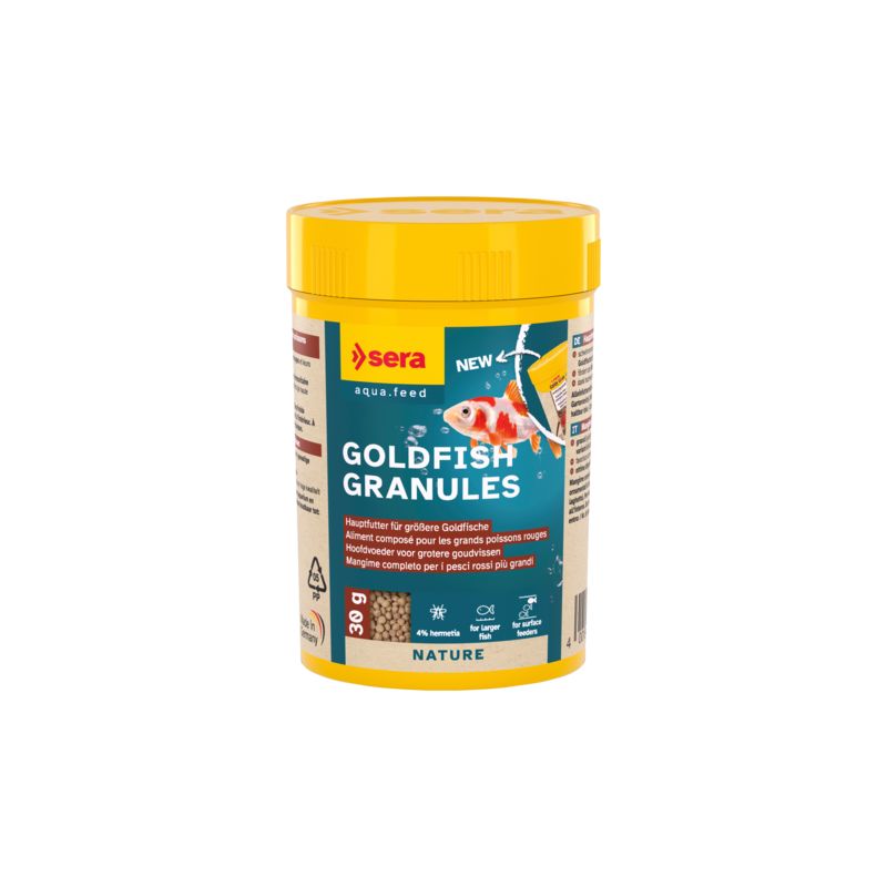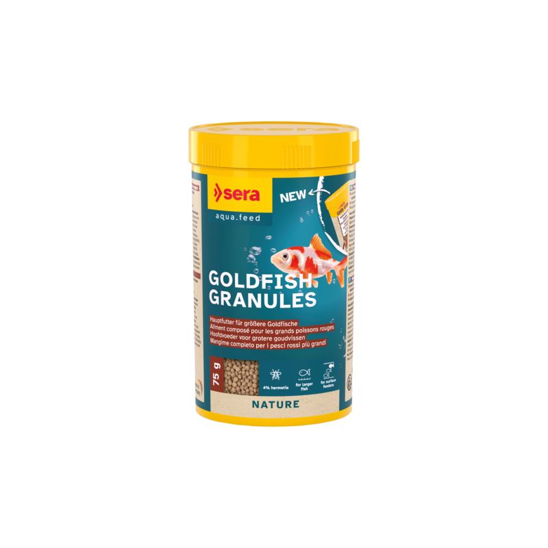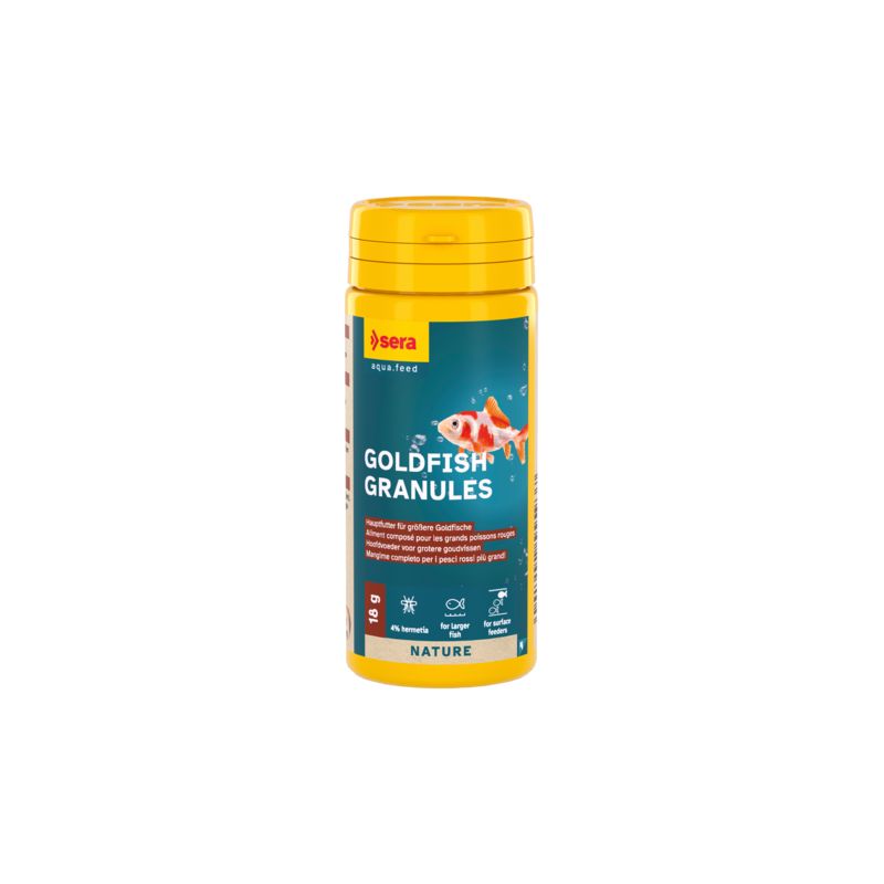 sera Goldy Gran est l’aliment composé, à base de granulés fabriqués selon un procédé spécial, pour les grands poissons rouges et autres poissons exigeants d’eau froide. Grâce à ses ingrédients de haute qualité, tels que les germes de blé (4 %), les acides gras Oméga et les mannane-oligosaccharides, cet aliment est très digeste et apporte tous les substances nutritives, même pour les formes d’élevage les plus exigeantes. De cette façon, les poissons grandissent en bonne forme, sans engraisser, et leurs défenses naturelles sont renforcées. Les granulés flottants conservent leur forme et ne polluent pas l’eau.