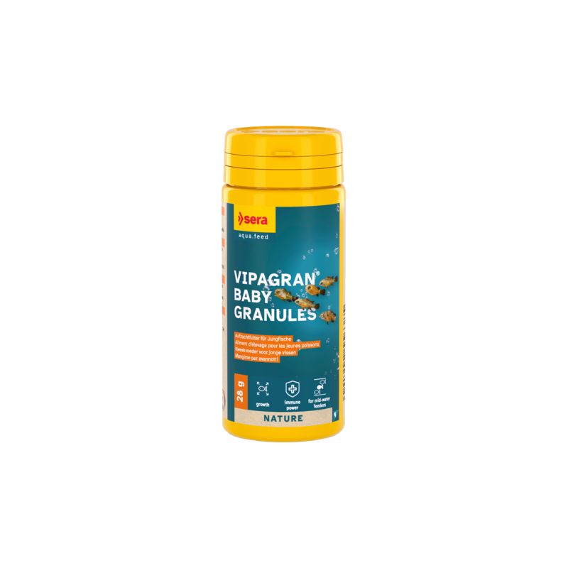 sera Vipagran Baby est l’aliment d’élevage à base de micro granulés moelleux, pour tous les jeunes poissons se nourrissant dans les couches moyennes de l’eau.
