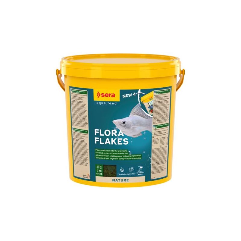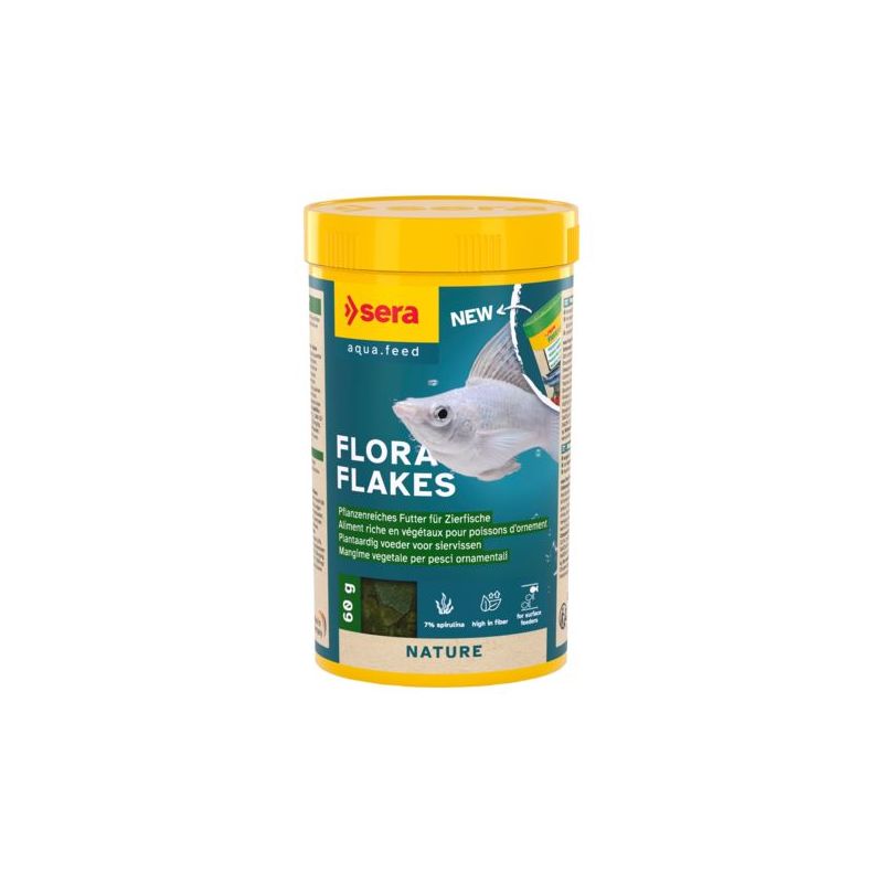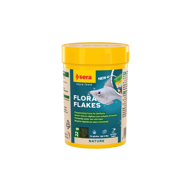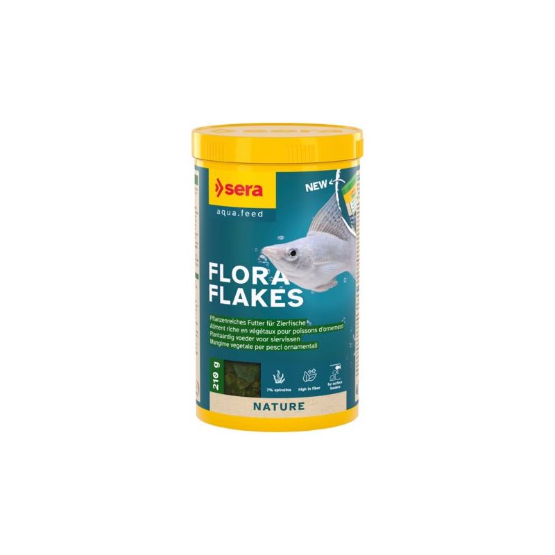 sera Flora Nature est l’aliment végétal pour tous les poissons d’ornement herbivores mangeant en surface, qui ne contient aucun colorant ni conservateur.
