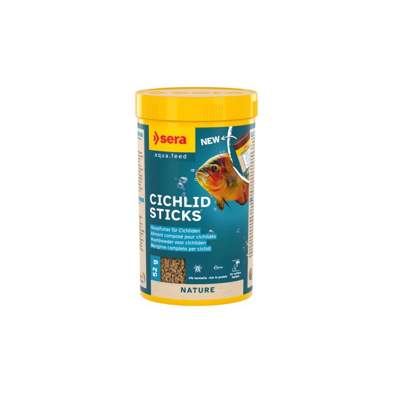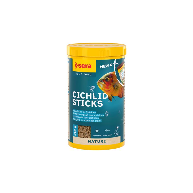 sera Cichlids Sticks est l’aliment composé à base de sticks fabriqués selon un procédé spécial, pour les grands Cichlidés omnivores - et compris un grand nombre d’espèces d’Amérique du Sud - et d’autres grands poissons.